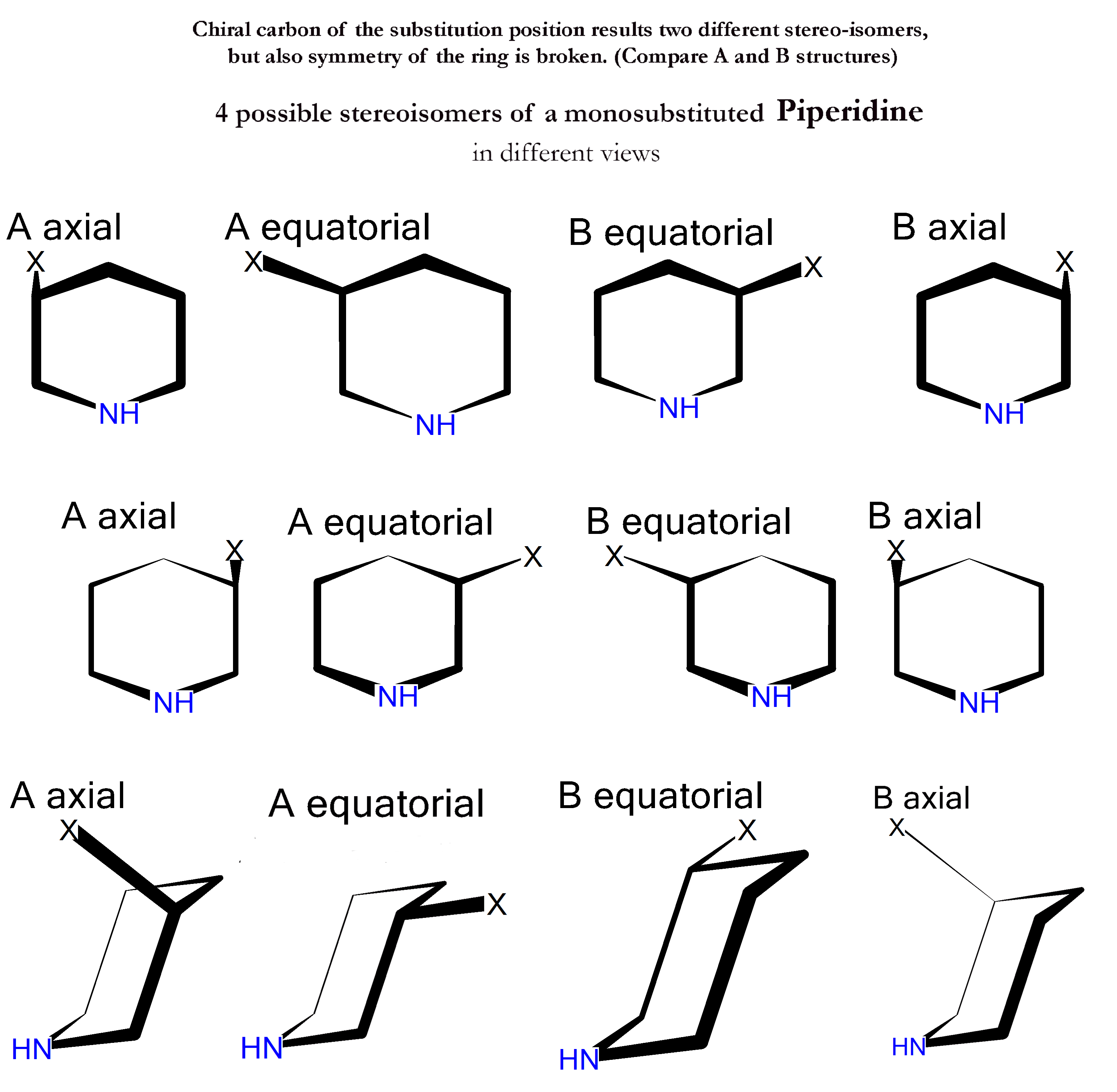 The 4 different possible structure on the picture not rotable one into the other. See the attached picture.