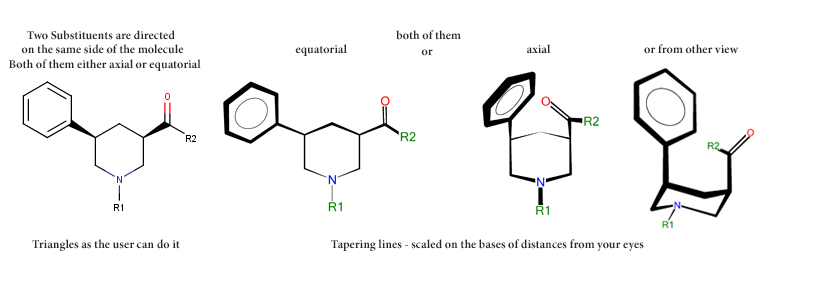 It is specially useful to study and show structures containing more rings or surrounding of chiral centers - compare enantiomers – without any rotation, without any special glass, without any weakening tone. You don't lose the 3D aspect even in representations using static form.